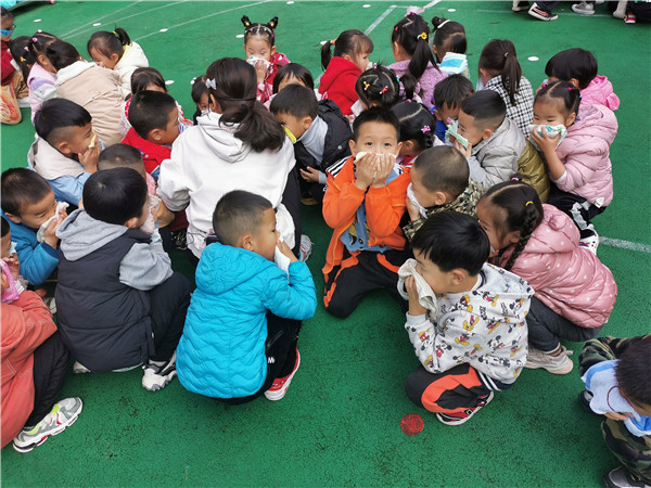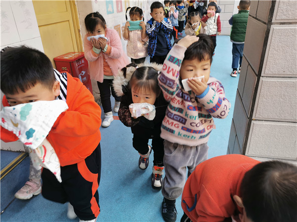 演练活动开始前,各班级老师对幼儿进行安全教育,让幼儿懂得着火了要如何进行自救、逃生、学会遇事不慌张不害怕、保持冷静,提高孩子的安全意识。随着警报声的响起,消防演练正式开始,全园幼儿在老师的带领下迅速用湿毛巾捂住口鼻,弯腰俯身,紧张而有序的按预定疏散路线,撤离到幼儿园操场。幼儿到达操场后,各班清点人数并依次向总指挥汇报撤离情况。