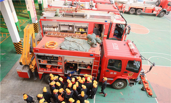 五年级的少先队员对于走进消防先锋的工作环境,了解体会消防先锋的日常生活,队员们既兴奋又期待。在消防大队,消防战士首先带领同学们参观了消防专用的车辆器材装备,与各种型号的消防车、消防器材进行了零距离接触,详细地讲解了各辆车的名称、功能、操作事项及车内各类救援器材和这些器材在灭火救援任务中的用途。