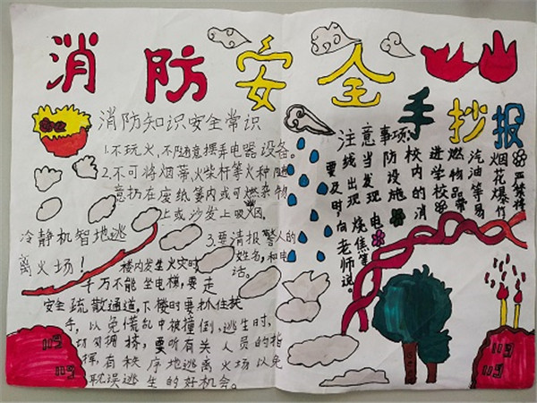 活动月中,学校先后组织开展了国旗下演讲、主题班会、手抄报、主题板报、消防演练等 “119消防安全”宣传月主题教育系列活动,将消防安全课堂教育与体验教育有机结合,提升师生的消防安全常识知晓率,树牢安全意识,筑牢安全防火墙。