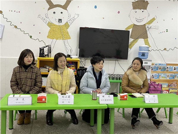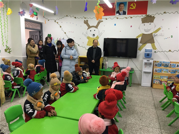 欢迎仪式结束后,在荞窝镇幼儿园园长刘依牛的陪同下,区教育局领导和田川名师工作室成员实地查看了荞窝镇幼儿园办园情况和活动环境,听取了刘园长的介绍,详细了解了幼儿情况、师资结构等。
