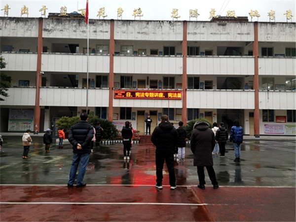 青龙小学 举行“学宪法、用宪法、大力弘扬宪法精神”主题升国旗仪式,组织师生聆听宪法专题讲座、收看全国青少年普法网收看网络直播、办主题黑板报、参加教育部北京主会场“宪法晨读”同步跟读活动,让师生了解宪法知识,营造浓厚的学法氛围。