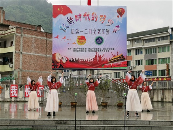 12月9日,举行了纪念“12·9”文艺汇演,各班学生以诗歌朗诵、舞蹈、合唱、相声等形式,表达对祖国的热爱,对革命先烈崇高的敬意。朗诵《红色宝兴》《国殇》、合唱《歌唱祖国》《我的中国心》、舞蹈《青春的活力》、相声《祖国在我心中》等节目展现了灵中学生积极向上的精神风貌,赢得现场阵阵掌声。颁奖仪式上,分别为本学期优秀学生干部、优秀团员、校园优秀播音员和文艺汇演中的获奖班级颁奖。(宝兴县教育局供稿) |