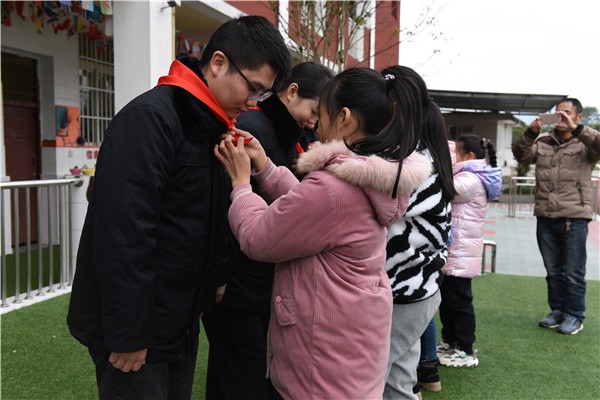 挂牌仪式上,名山区人民法院党组成员、审判委员会专职委员指出:名山区人民法院青少年法治教育基地的挂牌成立实现了审判工作和培养教育的有机融合,希望依托法院优势,为广大青少年学法用法搭建平台,进而努力把青少年权益保护和犯罪预防工作落实落细。名山文昌实验小学介绍了校园法治建设过程,前期与法院共同开展“模拟法庭”活动,在师生中产生了很积极的影响,希望未来继续与法院共同开展更多的法治教育实践活动,进一步为校园法治建设夯基筑台。随后,名山文昌实验小学学生为参加仪式的法院干警献上了红领巾。