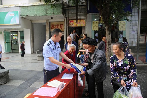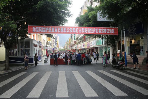四川新闻网雅安5月17日讯 5月15日,石棉县公安局会同农业银行、中国银行、工商、税务、烟草等部门在县步行街开展“防范风险护航发展”为主题的打击防范经济犯罪宣传日活动。