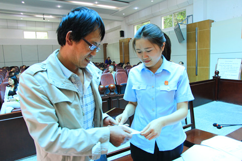 四川新闻网雅安5月18日讯(王甜甜 文/图)5月17日,石棉县法院召开执行案款集中兑付大会,共向74名申请人发放案款590.25万元,其中包括向65名农民工发放劳务工资25.37万元。发放现场,农民工连连对法院抗住压力、辛勤工作表示感谢,称法院真正做到了为民办实事、办好事,切实维护了贫困老百姓的合法权益。 据悉,该65名农民工为同一系列案申请人,被执行人为石棉县某化工公司,法院受理后已于去年春节期间执行到27万元发放给65名申请人,此次65名申请人是与乐山某矿业公司共同分得一笔款项。这笔款项在法院执行到位前已被矿业公司保全,执行到位后双方均要求法院将该笔款项发放给自己,法院依法制定的分配意见双方不予认可,并开始向县、市两级相关部门、单位反映情况以维护自身利益。最终,在历时五个月的“拉锯战”之后,矿业公司与65名申请人对该笔款项的发放达成了一致意见,法院立即将该笔款项发放给申请人。 |