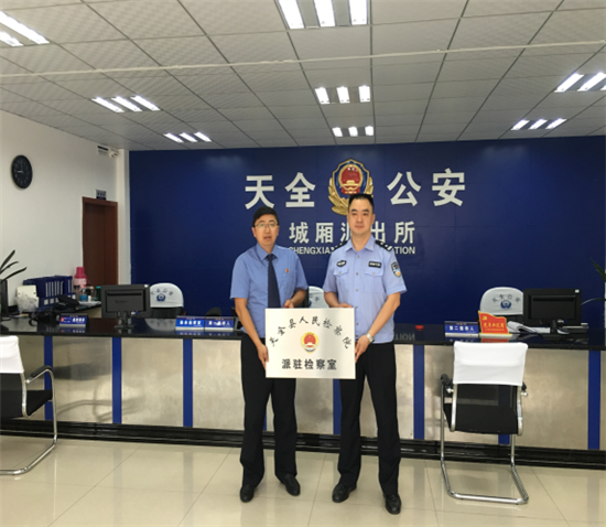四川新闻网雅安6月23日讯(彭文 文/图) 6月22日,天全县人民检察院党组成员副检察长柯斌在天全县公安局城厢派出所进行了派驻检察室挂牌仪式。此前,天全县人民检察院与天全县公安局共同会签《关于派驻检察官加强刑事侦查活动监督配合的实施意见(试行)》的文件,以城厢和始阳为定点设立两个片区派出所派驻检察室。 天全县人民检察院与县公安局会商后根据天全县派出所分布和办案情况,以城厢片区和始阳片区为两个主要派驻点,对公安派出所派驻检察官,实现对公安派出所刑事侦查活动监督全覆盖。 天全县人民检察院将开展以定期或不定期巡查案件材料等方式,坚持监督制约与协作配合相结合,确保监督工作落到实处,不走过场,与派出所一起共同提高案件质量。派驻检察室受到了派出所民警的欢迎,认为这一举措能让检警沟通与协助进一步加强,减少分歧,统一执法理念和执法标准,提高执法水平,防止冤假错案,保护好人民群众的人身和财产安全。 |