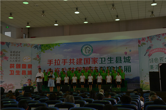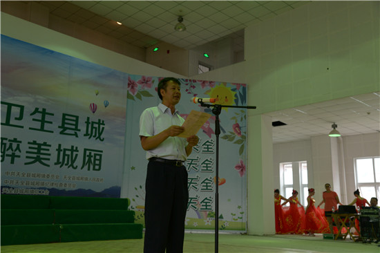 县委书记戴华强致辞 “三句半”《今天来把创卫说》 大合唱《争创国家卫生城+众人划桨开大船》 四川新闻网雅安7月19日讯(李琼会 文/图)7月18日上午,由天全县城厢镇党委、政府主办,镇纪委、镇总工会、镇综合文化站、镇群团服务中心、镇创卫办、镇关工委共同承办的“手拉手共建国家卫生县城心连心共筑廉洁醉美城厢”大型文艺演出在天全中学学术报告厅隆重举行,为现场观众送上了一道精美绝伦的精神文化大餐。 歌伴舞《天堂很远天全很近》 快板《我们是创卫宣传员》 情景诗朗诵《创卫我们的责任》 当天,雅安市委常委、市委秘书长、天全县委书记戴华强,县委常委、政法委书记陈良军,县人大常委会副主任彭武,县人民政府副县长、县创卫办常务副主任程叶等领导到场观看了演出。戴华强在开幕式上致词,他指出,创建国家卫生县城是民生所需、发展所需、文明所需、工作所需;开展廉洁天全建设是巩固执政基础的重要保证,是各项建设事业的重要保证,是全面小康的重要保证。他希望15万天全人民统一思想、团结一心、从我做起,做一个热爱家乡、热爱生活、热爱洁净的天全人,争做国家卫生县城创建的参与者,争做廉洁天全的宣传者,争做天全经济社会发展的建设者,共同建设一个干净、廉洁的美丽天全。 |