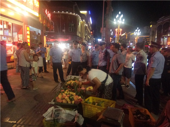 夜间整治 四川新闻网雅安8月3日讯(李琼会 文/图)7月21日,天全县城管局、县公安局、交警大队、城厢镇政府及新区社区、东城社区联合开展新一轮夜市摊点集中整治行动,以进一步规范夜市摊点经营秩序,营造干净整洁、规范有序的市容环境。 给流动商贩宣传创卫知识 文明劝导 当日晚8时30分,由城厢镇新区社区“两委”干部、社区关工委“五老”志愿者、社区网格员共计20人组成文明劝导员队伍,与县城管局、县公安局、交警大队、城厢镇政府等部门在音乐广场附近共同开展夜市摊点集中整治行动,他们一边向行人和流动商贩宣传创建国家卫生县城相关知识,一边对不礼让行人的驾驶员、随意横穿道路交通的行人、以及乱摆摊位的业主、露天烧烤店进行文明劝导。活动中,社区文明劝导员还先后到茶厂商业中心、天全汽车站、大西康市场、向阳大道、广建南路、滨河路等重点区域周边,对随意占道、乱摆的摊位的不文明行为进行文明劝导,向其讲解占道经营的危害,并引导他们到规范的经营点,确保整治一片、整洁一片、巩固一片,全力推进整治行动,让坐商归店、游商归市。同时,通过集中整治,引导广大市民积极参与国家卫生县城的创建,自觉维护城市形象,提升城市市容市貌。 规范流动摊位 据统计,本次专项行动,累计检查夜市水果摊位、露天烧烤摊点25家,规范车辆停放秩序86起,清处置违规设置喇叭2个,收到了良好整治效果。自创建国家卫生县城工作启动以来,城厢镇新区社区配合相关部门积极开展夜市专项整治行动,加大了夜间执法和巡查力度,对夜间经营不文明行为进行文明劝导,不仅提高了社区工作在群众中的透明度,还进一步提升了社区服务能效。在开展专项行动中,市民们对夜市摊点集中整治行动表示支持,并表示积极配合创建国家卫生县城,自觉遵守相关规定。 |