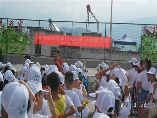 四川新闻网雅安8月15日讯(陈胜利 文/图)7月22日,西南财经大学一米阳光支教队的队员们来到汉源县大树镇中心小学,组织开展为期15天的夏令营活动。本届夏令营由西南财经大学一米阳光支教队主办,汉源县大树镇中心小学协办,萤火公益事业发展中心资助。 上午10点,孩子们整齐的穿戴特定的夏令营队服与志愿者队员们一起,在大树镇中心小学操场上开展了2017年西南财经大学一米阳光·大树夏令营开营仪式。活动由夏令营队员主持并由校长和支教队负责人讲话。在校长致辞中,刘校长表达了对孩子们的美好祝愿,同时也提出了要求,并对即将开展的夏令营送上祝福。 本次夏令营活动包括教学、作业辅导等有助于提高成绩的传统课程和形如手工折纸、科学、音乐等旨在扩展孩子们知识面、增长见识开阔眼界的素质教育类课程。 为了保证夏令营知识性与趣味性并存,在7月28日,夏令营的志愿者们举办了趣味游园会。将每个班级设置为游戏点,设立有趣的游戏关卡,并发放通关小卡片。夹玻璃珠、萝卜蹲、吹乒乓球、盲人击鼓……数十个丰富多彩的游戏吸引着孩子们踊跃参与,许多游戏点前甚至排起了长队。这些游戏有的考验孩子们的细心与耐心,有的锻炼孩子们的敏捷度,有的对于孩子们的团队协作意识提出了要求。整整一上午,回荡在校园内的既有孩子们闯关成功后的欢呼声,也有孩子们之间相互鼓励的话语。 手工课上,夏令营的姐姐慢慢教,孩子们跟着一步一步学。随着下课铃的响起,一只蝴蝶、一把雨伞、一朵玫瑰就在孩子们灵巧的手中悄然诞生;又或者主动发挥想象力,完成一幅幅精美的石头画和手抄报。期间夏令营还陆续开展了风筝日、阅读星球等内容形式丰富多样的活动。 与此同时,夏令营成员还十分注重培养孩子们的安全意识。各班班主任不仅在每天放学前都会叮嘱孩子们注意安全,低年级班主任更要求家长亲自到班接送孩子放学。队员们还在28日,专门给每个班的学生开展了安全讲座,并对部分学生进行了家访活动,强调了夏日游泳安全、交通安全等与大家息息相关的安全常识。 通过此次夏令营,志愿者们辛苦的付出,带给孩子们一个不一样的暑假,讲述不一样的故事,传递不一样的知识。短短十几天的时间虽不足以给这些孩子们带去翻天覆地的改变,但这次夏令营给孩子们和志愿者们带来的欢乐和触动都给彼此留下了最温暖的回忆。临别前,孩子们带着无数感动用《感恩的心》和最纯真的笑脸送别这个最美丽的志愿者团队。 支教志愿者们在收获别样体验的同时,也加深了自身对于边远地区教育的了解,更进一步感受到了作为一名当代大学生所应当担负的社会责任。非常感谢他们辛苦的付出!也希望社会各界能够有更多力量去关注这些孩子,去关注这里的教育。 |