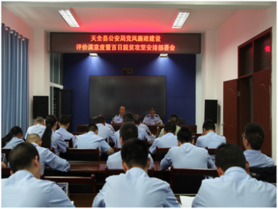 四川新闻网雅安9月28日讯9月20日上午,天全县公安局召开党风廉政建设社会满意度评价暨百日攻坚脱贫安排部署会,会议由天全县公安局党委副书记、政委王小可主持,天全县副县长、公安局局长曾勇及各部门负责人参加了会议。 会上,王小可按照《天全县公安局百日攻坚脱贫工作方案》和,对县局开展党风廉政建设满意度评价和百日攻坚脱贫工作进行了强调,一是当前党风廉政建设社会满意度评价和百日攻坚脱贫工作要紧紧围绕宣传发动,全员的积极参与。二是同心协力搞好这两项工作,是体现全局贯彻党中央从严治党、从严管党的重要体现,是贯彻落实上级文件的重要体现,是提升人民群众满意度,反映人民群众对我们工作成绩肯定的重要体现。三是全体党员民警要全心全力做好日常和本职工作,扎实推进党风廉政建设社会满意度评价和百日攻坚脱贫工作的深入开展。(文/图由天全县公安局提供) |