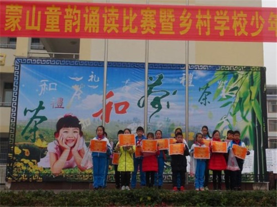四川新闻网雅安1月5日讯 为了加深学生对家乡文化的体验,传承和弘扬本土文化,近日,名山区蒙顶山镇中心小学开展了《蒙山童韵》诵读比赛。《蒙山童韵》是以名山区地理山川、历史人文、民风民俗为主要内容,采用韵文形式编撰的地方文化读本。 此次比赛中,各参赛队除了将《蒙山童韵》通过熟练的背诵展演之外,还有的参赛队结合韵文,选用了快板、歌曲、手语操、舞蹈等多种形式进行了更为精彩的展示。学校老师们也分年级组参加了此次诵读比赛,师生同台更是将比赛推向了高潮! 此次比赛为学生提供了一个自我展示和锻炼的平台,让学生在和谐的韵律中受到了家乡历史文化的滋养,感受到了家乡文化的丰富和深厚,进一步培养了同学们热爱家国的情怀。(名山区教育局供稿) |