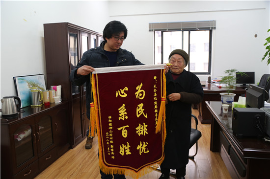 四川新闻网雅安1月9日讯(沈康军 图/文)1月8日,天空中大雪纷飞,气温骤降。天全县始阳镇切山村七组村民,年满80周岁的郭维英老人不畏严寒,拖着病体,在住建局工作人员的搀扶下,饱含深情、满怀感激地将绣有“为民排忧,心系百姓”字样的锦旗交到天全县住建局局长张毅手上,感谢天全县住建局在脱贫攻坚中对其家庭的关心和呵护。 据悉,郭维英老人年事已高,儿子又精神残疾,全家缺乏劳动力,郭维英老人一家也是天全县2014年建档立卡的贫困户之一。在帮扶过程中,天全县住建局帮扶干部走村入户,嘘寒问暖,多次为郭维英一家排忧解难。相继牵头协调为其解决闭路电视接入、内墙粉刷、房屋渗漏等实际困难和问题,逢年过节住建局还不忘组织干部职工送去生活用品等。尤其是在2017年年末,丈夫高朝贵生病住院期间,天全县住建局领导组织帮扶干部到医院多次探望,积极与医院协调高朝贵治疗事宜。在高朝贵逝世后,天全县住建局帮扶干部又积极为其协调身后事宜,真心的付出赢得了郭维英老人一家的信任和感激。 自开展脱贫攻坚工作以来,天全县住建局领导高度重视,为贫困村瓦坪村派出了第一书记,全脱产、全身心地去开展瓦坪村脱贫攻坚工作。为插花式帮扶村切山村派出了以班子成员带队、中层干部为中坚力量的帮扶队伍,全力助推切山村全面奔康。工作推进中,天全县住建局按照县委政府工作安排,脱真贫,真脱贫,务实高效地为群众服务,解决人民群众生产生活中的实际困难和问题。2016年牵头完成瓦坪村7户、切山村5户“四改五改”和危旧房改造项目,让贫困群众住房安全有保障;天全县住建局多方筹措资金用于两个村的基础设施建设,截至目前,已相继为瓦坪村和切山村筹措帮扶资金数万元。2016年—2017年牵头完成瓦坪村约3000米入户路、串户路建设,方便群众出行;在保证资金投入的同时,天全县住建局还要求干部职工下沉一线,与人民群众打成一片,真心为群众办实事、办好事,争取人民群众的拥护和支持;此外,在帮扶工程中,天全县住建局还将感恩教育融于帮扶工作中,用爱心向群众传递社会主义核心价值观精髓和自立自强的正能量,着力破除脱贫攻坚工作中部分群众存在的“等靠要”思想,收到了较好的社会效果。 |