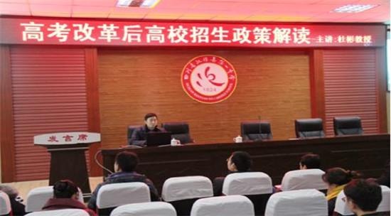 四川新闻网雅安2月1日讯 1月30日,为全面解读新高考政策,汉源一中特邀四川农业大大学就业处主任杜彬,四川农业大大学职业生涯规划课题组组长、国家二级心理咨询师、二级职业指导师、全球职业规划师、国际生涯教练黄青教授,给全体高中组教师开展新高考政策解读及职业规划指导培训。 培训前,校长王剑平对两位教授表示欢迎,并指出,面对新高考政策,学校在学生志愿指导、科目设置、选课分科等方面存在短板。 培训上,杜彬教授结合新高考、新课程改革,介绍了新高考将由“套餐”变为“自助餐”,文理不分科,志愿填报难度更大,对家长教师的知识面、认识度、信息掌握要求更高,强调只有未雨绸缪,加强学习,才能打赢高考改革之战,让山区学生走出更开阔的择校道路。 黄青教授以游戏结合实例,作关于如何指导学生进行人生职业规划的讲座。指出面对多元化就业现状,教师要结合学生自身特点,指导制定近期目标和长远规划,健全人格,落实目标任务。 汉源县教育局督学王昌平、教师发展中心全体教师、汉源二中部分教师等参加培训。(汉源县教育局供稿) |