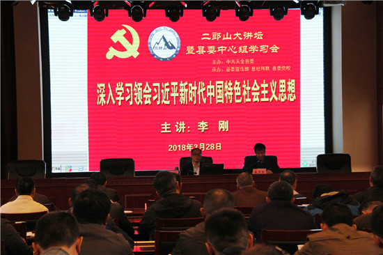 在全县党员干部全力推进项目建设的重要节点之时,在全县上下全力打赢脱贫攻坚硬仗、实现乡村振兴、旅游振兴、工业振兴“三大战略”之际,天全县举办专题讲座,有着开启智慧、丰富知识、提升素质,统一思想,凝聚力量、激励奋进的重要意义。 “二郎山大讲坛”是天全县委打造的一个学习宣传平台。其目的为了深入宣传贯彻党的十九大精神,进一步拧紧思想“总开关”,充分发挥思想教育方面的精神引领作用。 |