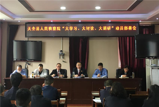 四川新闻网雅安4月24日讯 近日,天全县人民检察院召开“大学习、大讨论、大调研”动员部署会,会议由党组成员、副检察长柯斌主持。 首先,柯斌副检察长宣读天全县人民检察院“大学习、大讨论、大调研”活动方案,明确了活动的组织领导、主要措施及安排等。 其次,刘奇检察长向全院干警阐述了组织开展“大学习、大讨论、大调研”活动的背景,并强调此次活动的重要意义,希望大家高度重视。 最后,刘奇检察长提出了两点要求:一是,全员要迅速行动起来,将思想统一到“大学习、大讨论、大调研”活动中去;二是,领导小组、各科室以及个人要按照活动安排切实抓落,确保活动有效进行。(天全县人民检察院供稿) |