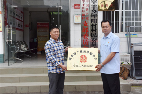 四川新闻网雅安4月26日讯(李永鑫 文/图)4月24日,石棉县法院在宰羊乡坪阳村挂牌成立黄果杆产业法律服务点。石棉县法院党组书记、院长程向勇参加成立仪式并向坪阳村村委会主任授牌。为加快乡村振兴步伐,保障农村重要支柱产业健康良好发展,更好服务石棉县委“1237”发展战略,提供强有力的司法保障。