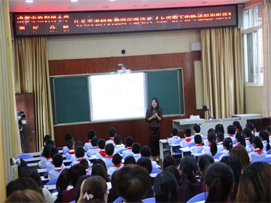 四川新闻网雅安5月8日讯 5月4日,成都市泡桐树小学西区分校周英校长一行到汉源县九襄镇小学教育集团开展“送教帮扶”暨“指导集体备课”活动。汉源县教师发展中心、九襄镇小学教育集团240余名教师参加活动。 参加活动的领导合影 活动通过语文、数学科同步进行教学观摩、课后议课开展。教学观摩中,泡小的马凡美老师带来语文课《上声韵下的吟诵起步组诗教学》、姚智文带来数学课《加法交换律和乘法交换律》;九襄一小李小翠老师、二小赵秋萍老师带来四年级语文课《乡下人家》,五年级数学课《长方体和正方体的体积计算》。 活动现场 集团李小翠老师上汇报课 集团赵秋萍老师上汇报课 议课、汇报活动中,泡小专家就课例和集体备课进行点评和指导,强调语文科要从“能放、能收;用心、入心、合心;课堂立体”三个方面着手。数学科要以人为本,尊重学生的生活经验、尊重学生的差异、尊重学生的生成、尊重学生的话语权、尊重的学生的认知规律,为学生量身打造有效课堂。周英校长强调,教师在教学中,要提前作好预测,摸清学生知识基础,注重拓展思维,培养学生综合能力。 泡小西区刘杜鹃老师指导语文集体备课 泡小西区马凡美老师上示范课 随后,集团240余名教师齐聚汉源一中学术报告厅,聆听了周英校长《迎接新一轮课改》的专题讲座,指出陈宝生部长已吹响“课堂革命”的号角,课堂革命是一场关于心灵、观念、技术、行为的革命,作为教师,要有“面向未来”的教育观、人才观、学习观、教师观、学生观,积极参与变革,不断地学习,重建专业生活,重塑专业自我,做新一轮课改的同行者,为孩子的未来负责,真正为孩子的美好人生奠基。 泡小西区团队在活动中 泡小西区姚智文老师上示范课 县教育局党委书记、局长白敬强调,实现课改,事关长远,事关全局,任重道远,教师要在课改大潮中,干在实处、走在前列、勇立潮头,为学生护好航、掌好舵,做一个有追求,有自豪感、有幸福感的课改同行者! 泡小西区周英校长讲座 集团教师纷纷表示:将以此活动为契机,努力学习,提高自身专业素养,以全新的面貌迎接新一轮课改,做一个不被世界所淘汰的,能面向未来的新教师! 泡小西区周英校长指导集体备课 此次教研活动,不仅充分发挥了泡桐树小学西区分校的引领、示范作用,搭建起了两校平等交流、对话的平台,使两校的“结对帮扶”工作又走向了一个新的台阶,也有效地促进了集团教师学习的积极性,激起了集团教师积极参与课改的信心和决心。(汉源县教育局供稿) |