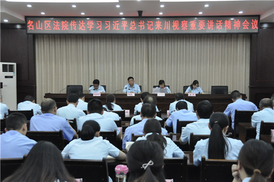 四川新闻网雅安5月17日讯(黄敏 文/图)5月14日,名山区法院召开党组(扩大)会、全院干警大会,组织干警再次学习习近平总书记来川视察重要讲话精神。 会议强调,习近平总书记来川视察重要讲话精神指导意义重大,为新形势下做好四川工作提出了总体要求,指向明确,为做好新时代的法院工作提供了根本遵循和行动指南。 会议要求,一是找准合力点,持续深入学习。以开展“大学习、大讨论、大调研”活动为契机,细化学习贯彻方案,落实责任分工,在学懂弄通做实上狠下工夫,二是把握切入点,提高思想站位。“庭室+支部+青年汇”为单位,将学习讲话精神纳入庭务会、党支部“三会一课”、支部主体党日活动、青年主题活动内容,始终将学习党的十九大精神和习近平新时代中国特色社会主义思想贯穿于学习和工作中。三是紧扣着力点,发挥司法职能。主动适应新形势、新任务,要善于运用灵活的方法、创新的思路,发挥法治智慧定纷止争、化解矛盾,为决胜整体跨越、打赢脱贫攻坚、实现供给侧结构性改革提供强有力的司法保障和司法服务。 |