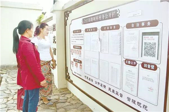四川新闻网雅安6月7日讯(唐小未 文/图)村务公开,保障广大群众的知情权、决策权、参与权和监督权,是完善村民自治、强化村民监督的根本保障,也是构建共建共治共享社会治理格局的有效载体,更是推进党风廉政建设,提升群众获得感幸福感的重要支撑。 在村务公开中,雨城区把“阳光村务”作为依法治村的重要抓手,规范村务公开的内容、格式、形式、程序和时间,确保村务公开的法治化、时效性和透明度,自信地为加强民主监督打开了一扇大门,也为保障人民群众安居乐业提供了不竭动力。 雨城区合江镇塘坝村村民正在了解村务公开情况 公开内容全面化 村民想知道什么就公开什么 18日,合江镇塘坝村,云台山茶叶交易市场人来车往。卖茶叶的茶农,一背篓茶可为他们带来100多元的收入;收茶叶的客商,货比三家,看哪家的茶叶好。 “有了这个茶叶交易市场,大家卖茶有了去处,每家的茶园收入可提高几千元。” 塘坝村村委会主任姜鸿霞说,“还属今年的茶叶价格最好,最高卖到每公斤160多元。” 合江镇是远近闻名的茶乡,全镇3.5万亩茶园是绿色发展带给茶农的增收希望。为了畅通茶农的销售渠道,塘坝村云台山茶叶交易市场在去年破土而生。合江镇乃至附近几个乡镇的茶农都到这里卖茶。 每日11时左右,人流、车流都朝这里汇聚。数百名茶农,数百个背篓,数百辆摩托车、三轮车,还有远远近近的客商,都在这里共同构成茶叶交易市场的兴旺。 去年,塘坝村村“两委”自掏腰包,聘请了3名保洁员,负责茶叶交易市场的市场秩序、交通秩序、环境卫生和公共设施维护。然而,这一笔支出对塘坝村来说却是不小的负担。因为茶叶的采摘期从春节后一直持续到国庆节。 今年茶叶采摘前,村“两委”在深入调查研究和广泛征求村民意见建议的基础上,提议将茶叶交易市场公开对外招租,承租给别人进行管理和维护。此后,村“两委”召开联席会,对招租的底价、招租条件等进行了商议和审议,再通过村民大会、村民代表大会表决,最后公示接受村民评议。 大家觉得此事可行。 最终,在竞标者的“你争我夺”中,茶叶交易市场由竞标价8000元上涨到成交价15000元。朱锦成了茶叶交易市场的管理员,并遵守与村“两委”的约定,不对茶农收费,只收取客商的卫生维护费,最低5元,最高不超过10元。 在茶叶交易市场右侧,一块竖着“让村务在阳光下运行”的公告栏下,有4面展板墙被分别镌刻着阳光村务、群众明白、干部明白的柱子隔开。塘坝村党务、村务、纪务、村民自治事务、雨城区“阳光村务”微权清单五十条分门别类地在这里公示。 在村民自治事务一栏,还清晰地记录着茶叶交易市场招租的情况。姜鸿霞说,茶叶交易市场招租属于村级重大决策事项,整个招租程序也是按照“阳光村务”微权清单五十条中村级重大事项五议决策流程图展开的,每一个环节、每一道程序都有档案可查。 “这里交通方便,人口密度大,往来人员也多,将公示栏设在这里,就是为了方便更多群众了解村里的大事小事,知晓各项事务的办事流程,起到便民服务和监督干部两不误的作用。”合江镇一相关工作人员说。 为切实解决村务公开中普遍存在的公开内容不全面、格式不规范,以及公开内容让群众看不懂等现象,雨城区建立全区统一的村务公开模板,大致分为村级政务、村级财务和村民自治事务。 “村务公开要做到凡是涉及村民切身利益的事项、凡是涉及本村经济社会发展的事项、凡是村民关心的事项,都要全方位公开。”雨城区民政局相关负责人表示。 因此,合江镇在推进“阳光村务”工作中,做到由过去只对财务进行公开转变为对村级政务、村级财务、自治事务等村民普遍关心的问题全面公开。由侧重于公开办事结果向公开办事标准、办事程序延伸,把群众关心的内容全部交底亮相。由侧重于“我贴你看”向“你问我答”延伸,增添“点题公开”版块和“回音壁”版块,一改过去村里公开什么,村民就看什么的老面貌,做到了村民想看什么,村里就公开什么。 雨城区对岩镇龙岗村组织村组干部为村民发放村务公开单 公开形式多样化 实现从村到组到户全覆盖 10日9时,对岩镇龙岗村一组村民张忠银照常收到了镇政府群发的“龙岗村账单”。 这是龙岗村2018年第一季度的收支情况。去年结存、本季度收入、本季度支出、支出明细、本季度结余……透过一串串数字,龙岗村“两委”向全体村民交了“明白账”。 当然,如果张忠银想更为详细地了解龙岗村的收支情况,他还可以到村活动中心去看。 那里的展板分门别类地展出了龙岗村一季度,惠民政策及落实情况,低保、高龄津贴、重度残疾补贴发放,医疗救助、临时救助,第一季度财务收支明细,以及村民最关心、最急迫解决的事情和民主评议结果。 在那份4月14日公示的村财务账单中,张忠银详细地了解到,龙岗村一季度收入,既有政府拨付的公共服务资金、网格化资金等专项资金,也有附近社区赞助LED显示屏的经费,以及个体商户交村委会的租金;一季度支出,主要用于网格化保洁员工资、卫生突击人员工资、春节慰问离退休老干部支出、办公用品支出等。 每一笔资金的来去向、额度都一目了然。账单的落款处,还分别有村委会主任冯小波,村理财监督小组审核人冯贵群,以及乡镇审核人严静的签字。“对村上的资金资产资源做到心中有数,