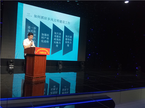 “乡风就词性本身而言,是指乡村风俗、乡村思想和乡村道德等乡村意识形态。”由乐英乡党委选派的爱国村农民夜校校长、第一书记吴尧在比赛中从乡风文明概念入手,客观分析了爱国村乡风文明建设的现状和面临的形势,对下一步如何抓好乡风文明建设提出了建议和对策,使此次党课竞赛成为大家交流思想、相互提高的重要平台。经过五个小时的激烈角逐,本次农民夜校“校长赛党课”活动圆满结束。评委按照讲课内容、语言表达、态势神情、仪表形象、竞赛时间等项目进行客观评分,选出了一等奖3名、二等奖5名、三等级7名、优秀奖10名,现场对获奖选手进行了颁奖。爱国村农民夜校校长、第一书记吴尧获得本次农民夜校“校长赛党课”第一名。
