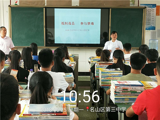 四川新闻网雅安6月26日讯 “6.26”是国际禁毒日,今年的主题是“抵制毒品、参与禁毒”。为做好2018年禁毒宣传活动,切实加强学校禁毒宣传工作,提高广大青少年抵制、防范毒品危害的能力,进一步加强校园毒品预防教育工作,掀起禁毒宣传教育活动高潮,营造全民禁毒的浓厚氛围,百丈镇中心卫生院会同镇派出所干警于6月25日在名山区第三中学开展禁毒宣讲活动。 活动中百丈镇中心卫生院院长高霞就禁毒方针政策、禁毒的法律法规,以及禁毒的重大意义和吸毒、贩毒的危害性等相关知识对同学们进行了讲解。同时还发放禁毒图片、禁毒宣传小册子等宣传资料1000余份。 通过此次活动,不仅提高学生的禁毒意识,同时也提高了青少年对毒品知识及危害尤其是新型毒品的危害的认识,进一步增强了防范意识。 (名山区卫计局供稿) |