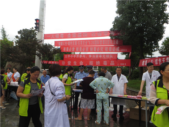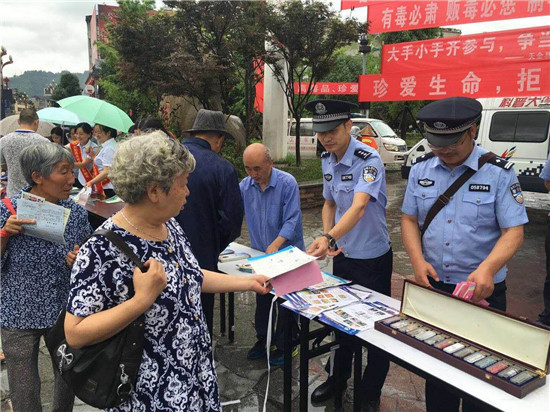 四川新闻网雅安6月27日讯(高雅 文/图) 为让全民参与禁毒,进一步了解毒品危害,创造良好的社会治安环境。按照上级统一安排部署,天全县公安局联合县法院、县检察院、县司法局、城厢镇等相关部门,在城区和各乡镇联合开展了“6.26”国际禁毒日集中宣传活动,让禁毒宣传进社区、进学校、进家庭,让全县人民群众深入了解毒品知识,掀起全民禁毒宣传月活动高潮。