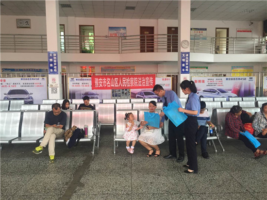 四川新闻网雅安6月27日讯(张智 文/图)6月26日,名山区检察院组织干警前往名山区车站,开展了一次禁毒宣传教育活动,收到了良好的法律效果和社会效果。 名山区检察院选择在人流量较大的汽车客运站作为宣传点,通过悬挂横幅、发放典型案例、附有该院微博、微信二维码的宣传卡片、禁毒宣传手册、开展法制问题咨询等形式,面对面地与当地群众进行交流,并结合自己的办案经验详细地向群众介绍毒品的种类、立案标准、毒品危害性等,耐心解答群众提出的法律问题及关心的热点、难点问题。当天共发放宣传手册300余本,收到了良好的社会效果。部分群众表示这种普法宣传活动很好,这样能够使他们更加了解法律,规范自身的行为,同时也能以身作则更好地教育下一代。 通过一系列禁毒宣传活动,有效提高了群众知法、守法、用法的法治意识,为发挥人民群众在禁毒工作中的主体作用、实现“人人拒绝毒品,人人参与禁毒”的良好社会环境起到了积极的推动作用。 |