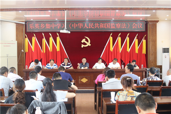 四川新闻网雅安6月28日讯(杨鑫 文/图)6月26日,乐英乡组织全体乡、村干部近50余人集中学习了《监察法》。 会上,乡纪委书记杨晓宗从监察法颁布的重大意义、监察法起草过程指导思想和基本思路、监察法的主要内容、监察法“六大焦点”这四个方面对《监察法》做了重点解读。要求全体干部树立正确的法治观念,增强法治意识,严格要求自己,养成遵纪守法的好习惯,牢记使命担当,积极履职尽责,争做人民满意公职人员。 乡党委书记张兴富强调指出:一是要提高站位,深刻认识。全面深入的理解《监察法》对推进依法治国的重要意义;二是要认真学习,深刻领会。充分认识到监察全覆盖和法治监察的作用,做到学有所获,学有所得。三是要学以致用,严于律己。时刻牢记为人民服务宗旨意识,以人民为中心,真正做到内化于心,外化于行,不要为一时的贪婪做出违纪违法、悔恨终身的事情。