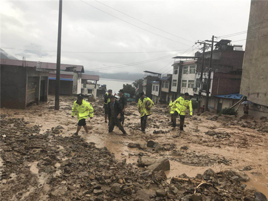 昨(2)日凌晨,汉源县普降大到暴雨,个别乡镇12小时累计降雨达74.2毫米,大树镇新民村雨量达68.4毫米。暴雨造成大树、九襄、宜东、顺河、富乡等多个乡镇突发泥石流、山体滑坡、道路垮塌等险情灾情,导致国道108线、省道306线等乡镇区域道路、永定桥水利工程向阳沟山体划坡无法向县城供水、九襄水厂、宜东水厂取水口无法正常取水,大树镇新民社区3、4组发生泥石流,直接威胁人民群众生命财产安全。险情发生后,在外休假的县人民政府副县长、公安局长何伟庚即指派在家主持工作的县公安局党委副书记、政委罗洪康和在家局领导启动应急抢险预案,率全体民警第一时间奔赴现场开展交通管制、救援、疏散、安抚群众等工作。截止目前,汉源县公安局已出动警力400余人次,警车62台次,疏散并安置群众300余人,救助被困群众14余人,疏导车辆1500余辆。