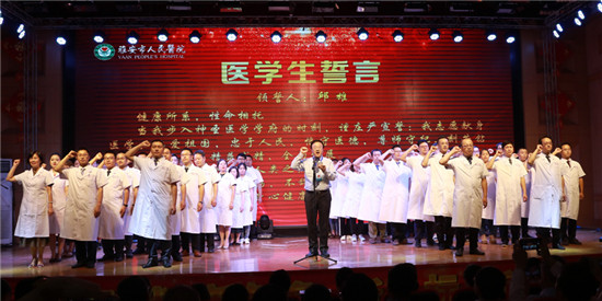 四川新闻网雅安8月28日讯 在首届中国医师节来临之际,近日,雅安市人民医院举办了首个医师节庆祝活动,展示了全院医师队伍“敬佑生命 救死扶伤 甘于奉献 大爱无疆”的新时代风采。市卫生计生委、市直医疗机构、各县区医院主要负责人和市人民医院院领导班子成员及全院约600余名医务工作者参加了庆祝活动。 签名留影 庆祝首届医师节 当天的医师节庆祝活动,在难忘的医师节“签名、留影”纪念活动中拉开序幕。 当天下午活动还未开始,雅安市人民医院盛情邀请的市卫生计生部门相关单位代表及全市各级医疗卫生战线的医师们相继抵达雅安市人民医院城后路院区学术报告厅,共赴这场节日盛宴。 与此同时,来自雅安市人民医院各临床科室的骨干医师们也纷纷来到活动现场签名留影。 “终于有了属于我们的节日,我们要铭记,更要感恩这样的时光……”现场,医师们纷纷走上红地毯,在医师节签名墙前签名留影,医师们以这样简单而特殊的形式庆祝属于自己的节日。 当天的医师节庆祝活动,设置医师节签名留影活动、医师节文艺表演活动和医师表彰三个方面的内容。其中文艺表演活动环节划分了“不忘初心、砥砺前行”、“不负韶华、大医精诚”、“不止于此、再铸辉煌”三大篇章,充分展示了医师们奋发向上的精神风貌。 雅安市人民医院举办首届中国医师节活动,旨在通过弘扬社会主义核心价值观,展示白衣天使的美好形象,诠释“敬佑生命、救死扶伤、甘于奉献、大爱无疆”的生动内涵,凝聚行业力量,呼吁全社会关爱医务工作者,营造尊医爱医良好氛围,支持医疗卫生事业发展。 真情演绎 诠释医者的担当 签名留影结束后,迎来了当天的医师节文艺表演庆祝活动环节。 一段精彩的医师形象片播放,将浓浓的节日祝福带到了会场,医师护卫生命的大爱情怀在短片中得以展示。 重温医学生誓言 朗诵《走过芳华》 文艺表演庆祝活动,在雅安市人民医院自创舞蹈《白衣天使》中激情开幕,展现了当代医护人员在危难面前逆行而上,勇往直前,无私奉献的忘我精神。 妇科抢救演练展示 诗朗诵《走过芳华》把当天的文艺表演推向了高潮,朗诵者雅安市人民医院妇产科主任李毅,讲述了她数十载的行医感悟,快乐、汗水、心酸与感动,在她讲述的每一个故事里、每一话里都透露着医者满满的奉献情怀。 节目《白衣天使》 紧接着,雅安市人民医院院领导还亲自带领全院骨干医师进行了重温医学生誓词。随后,节目情景讲述《你是人间天使》和《大爱无疆》则用“事实”说话,通过患者上台讲述就医故事、事件亲历记者口述的形式,再现医院医护人员“救死扶伤”感人事迹,节目充分诠释了医者勇于担当、治病救人的大爱情怀。 歌伴舞《最美是你》 此外,节目《妇科抢救演练展示》、《最美是你》、《大医精诚》、《当你老了》、《不忘初心》等,一一真情的演绎了医师们忠于职业的崇高情怀。 造福人民 履行医者的使命 活动现场,广大医护人员青春向上,用独特的医院文化,大力弘扬新时期卫生健康崇高精神,展示了以模范典型为榜样,秉持初心、再接再厉,为保障人民健康再立新功的决心。 市卫生计生委主任李志强致医师节贺词 市卫生计生委主任李志强亲临现场为活动致贺词,向在场的医师们致以诚挚的问候和节日的祝福。与此同时,雅安市人民医院党委书记樊正康,党委副书记、院长邱雄分别现场致辞,他们在对临床一线全体医师们致以节日祝福的同时,又对医院医疗战线的全体医务工作者提出了工作要求。 雅安市人民医院党委书记樊正康致辞 “医者,是我们一生从起点到终点的陪伴。”樊正康表示,医院举办医师节庆祝活动目的,就是“加强职业初心教育,弘扬救死扶伤、全心全意为人民健康服务的行业精神,进一步推动全院医师职业规划与医院高质量发展同步,推进了医院文化建设,展示了医务工作者奋发向上的精神风貌,履行医者使命,造福人民”。 党委副书记、院长邱雄向全员职工寄语 邱雄讲,首届医师节庆祝活动就是让全体医师感受执业高尚、享受节日快乐、增强工作自豪感,同时也是为了激励广大医师学习典型、争先创优,努力提高技术水平和服务水平,更好的为人民健康服务。 后记: 当天活动现场,雅安市人民医院还对该院举办的首届中国医师节“微信人气投票仁心仁术大美医者‘人文医师’、‘骨干医师’、‘知名专家’”获奖者和“微信人气投票技精艺湛优秀科室”获奖科室进行了颁奖。 “人文医师”获奖者:罗丽君、田志江、余乐、王盛、李秋霖、高莉、李琛、李玲、文勃、王一。 “骨干医师”获奖者:任卫红、冯志、赵强、汤春贵、刘珂琦、张蓉、张瑚敏、何霞、程斌、邹永蓉。 “知名专家”获奖者:姜世平、黄定强、王成林、肖涌、吴艺、周述芝、田丹、杨敏、高培会、任平。 “技精艺湛优秀科室”:普外科、妇产科、急诊科、中西医结合康复医学科、麻醉科、耳鼻喉科、核医学科、肿瘤科、呼吸内科、肾内科、内分泌科、呼吸儿科、老年病科、消化内科、超声科。 此外,雅安市人民医院还对医院临床路径质控管理“优秀科室”和首届中国医师节临床路径管理演讲展示“优秀个人”进行了颁奖。 优秀科室:获得一等奖的是眼科;获得二等奖的是:肿瘤科、核医学科、呼吸科;获得三等奖的是内分泌科、新生儿科、