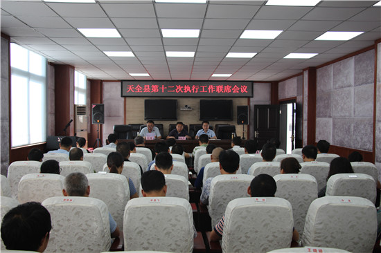 四川新闻网雅安8月31日讯(陈开萌 文/图) 为深入贯彻落实中央、省委、市委解决执行难的工作部署和省第十四次执行工作联席会议精神,进一步推进决战决胜基本解决执行难工作,经天全县执行联席会议领导小组研究决定后,昨(30)日上午,在天全法院召开第十二次执行工作联席会议。天全县委常委、政法委书记、执行工作联席会议第一召集人陈良军出席会议并讲话,执行工作联席会议成员单位、特邀单位、相关金融企业等41家单位参加会议。 会上,天全法院党组书记、院长秦明文同志通报了县法院2016年以来执行工作开展情况。县委常委、政法委书记陈良军同志在听取工作通报后对基本解决天全执行难工作提出三点要求: 一是切实提高政治站位,增强“基本解决执行难”的工作紧迫感和责任感。基本解决执行难”是一项民生工程,是满足人民群众对美好生活向往的重要内容,也是法律正义的最好说明。面对“基本解决执行难”问题,要有紧迫感和责任感。要将执行工作上升到贯彻落实党的十九大精神高度,强化统一管理、统一指挥、统一协调。 二是直面问题,找准症结,有的放矢,补齐短板。陈书记指出目前天全县执行工作还面临的突出问题:思想认识动员不够、执行大格局还需强化、法院主力军作用没有完全凸显、依法治理与“基本解决执行难”的配合和促进还需加强。要求所有成员单位保持清醒头脑,客观分析问题成因,认真找准短板瓶颈,统筹制定解决办法。 三、认清形势明白任务,再接再厉决战决胜。要加强组织领导,进一步巩固发挥执行大格局作用。县委政法委要进一步提高认识,切实解决法院遇到的具体困难;成员单位要认真领会市委全面深化改革领导小组28次会议审议通过,市委办公室、市政府办公室2018年8月8日出台的《关于加快推进失信被执行人信用监督、警示和惩戒机制建设的实施办法》,制定配套制度规范,配合法院执行工作。要继续坚持执行工作“一性两化”工作要求。加强执行工作强制性,高度关注“特殊执行”;加强执行工作信息化建设,提高执行指挥中心的使用;加强执行工作规范化建设,重实体更重程序。要加强宣传工作,营造“基本解决执行难”的声势氛围。 |