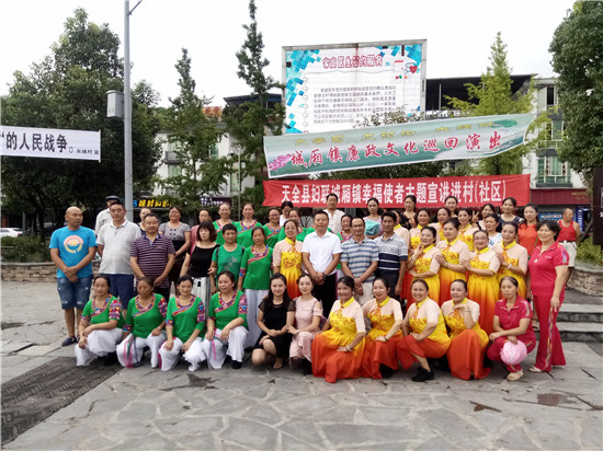 四川新闻网雅安9月4日讯(李琼会 文/图) 昨(3)日上午,天全县妇联、城厢镇妇联在该县音乐广场举行了幸福使者主题宣讲进村(社区)活动,同时联合向阳村、东城村、正西社区开展了“巾帼助廉”文艺演出。天全县妇联副主席杨琴亲临现场指导,并观看了“巾帼助廉”演出。 圆圈舞《阿拉伯之夜》