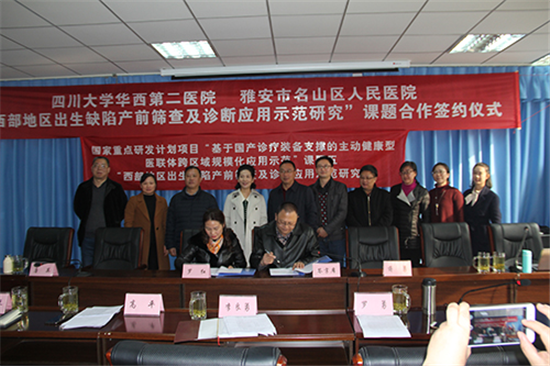 四川新闻网雅安11月30日讯 按照名山区委二届八次全会精神,为切实做好省委关于实施“一干多支”发展战略推进融入成都平原经济区发展的重大部署,在名山区委、区政府领导的关心支持下,经多方积极争取,名山区人民医院与四川大学华西第二医院超声科就国家重点研发计划项目“基于国产诊疗装备支撑的主动健康型医联体跨区域规模化应用示范”课题五——“西部地区出生缺陷产前筛查及诊断应用示范研究”的合作签约仪式于11月28日上午在名山区人民医院举行。名山区人民政府副区长李良勇出席并致词。 项目实施后,名山区人民医院将作为西部地区出生缺陷产前筛查及诊断应用示范研究基地之一,还将与10家基层医疗机构建立科研示范网络。名山区孕产妇将在乡镇卫生院进行一级筛查,区人民医院进行二级筛查,对有疑问的将通过绿色通道或远程会诊系统由华西第二医院进行筛查和诊断。同时,区人民医院可以免费参加国家级省级学术活动,华西第二医院定期或不定期派专家到名山区开展现场技术帮扶、授课。该项目的实施意义深远,有利于名山区卫生事业借力华西第二医院这个全国妇产儿童医疗高标准平台融入成都平原经济区,提升业务技术水平和对胎儿发育缺陷早发现、早诊断、早干预的能力,降低出生缺陷发生率,减少家庭负担、社会负担,为全区家庭幸福、社会和谐做出应有的贡献。 出席签约仪式的有四川大学华西第二医院超声科主任罗红教授、副主任唐英副教授,名山区人民政府副区长李良勇,名山区卫计局、名山区人民医院主要负责人及相关人员。(名山区卫计局供稿) |