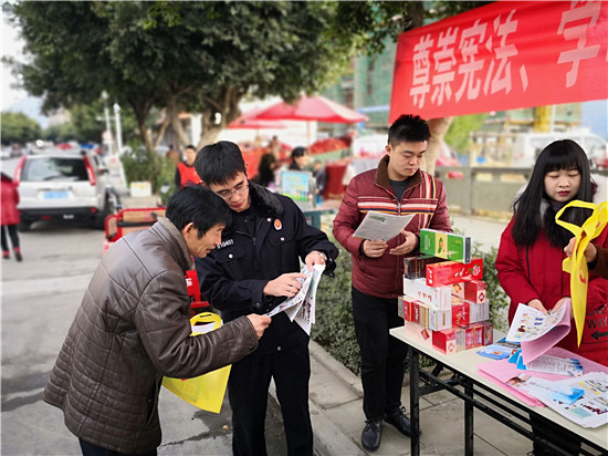 四川新闻网雅安12月6日讯(杨杰 文/图)为强化社会监督,营造良好的市场治理氛围, 近日,汉源县烟草专卖局以“尊崇宪法、学习宪法、遵守宪法、维护宪法、运用宪法”为主题,精心安排部署,积极开展“12.4”法制宣传教育活动。 通过设立宣传咨询点,发放宣传单,宣传宪法、烟草专卖相关法律法规、假烟危害等知识,同时普及“12313”举报投诉电话。通过摆放近年来查获的假烟实物,现场讲解真假卷烟识别知识,告知广大消费者知假、识假、拒假的意识,提高人民群众参与打假的自觉性和责任感,切实维护卷烟市场管理秩序。
