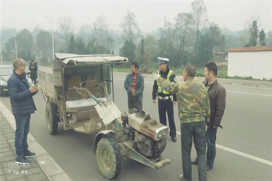四川新闻网雅安12月14日讯(何培文 王芦蓉 文/图)为进一步加强冬季道路交通安全管理工作,12月11日,芦山县公安局交警大队以“百日安全专项行动”为载体,联合县农业局在辖区内开展变型拖拉机专项整治行动,全面加强该县农机货运及变形拖拉机车辆的监管,切实消除道路交通安全隐患。 行动中,联合整治小组在芦太路、芦双路等农村道路,采取设置执勤卡点、流动巡查的方式在双石镇、龙门镇、清仁乡开展拖拉机专项整治。严查假牌、套牌、超载、超速、超员、拼装、改装、无证、准驾不符等违法行为,做到发现一起,查处一起。同时,以“细节关乎生命、安全文明出行”为宣传主题,采取宣教结合的方式,对违法驾驶人进行批评教育,讲解违法行为危害性,通过大力倡导“小细节”关系“大安全”的理念,不断增强交通安全法制观念,引导车辆驾驶人自觉遵守交规、文明行车,并加大宣传农机法律法规力度,对于未年检农机牌照的车辆,责令车主、驾驶员及时办理完善相关手续,筑牢了源头管理安全防线。