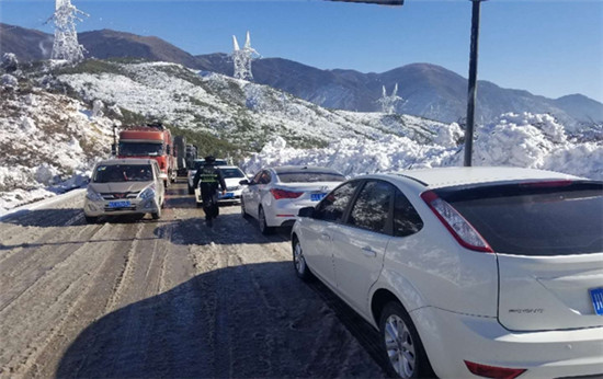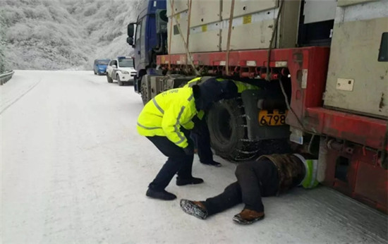 为切实保障广大游客的出行安全,汉源县公安局交警大队提早做足准备,也进行了充分的动员和宣传,关注天气信息,提前把恶劣天气预警信息、当前道路实时路况通过双微形式发布,提醒广大游客合理规划出行路线。并启动恶劣天气应急预案,全警出动,以路面车流变化为主要依据进行路面管控,全体警员坚持流量不减、警力不撤的原则,确保了国道108线泥巴山冬季道路安全畅通。由于周末、节假日车辆较多,许多司机由于没有开冰凌路的经验,不会悬挂防滑链条,为了经过的车辆能平安通行,警员总是帮大家把防滑链挂好,有时一天会帮助数十辆车挂防滑链,对于趴在雪地上安装防滑链条,警员们表示自己不觉得冷,对于弄脏的衣服,他们也不在意,说这是为人民服务,都是应该的。为保证所有路过泥巴山路段的车辆安全,警员们常常是24小时轮班值守,全方位的为司乘人员服务,确保每辆车都能安全通过。 |