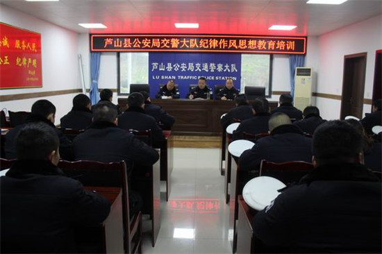 四川新闻网雅安1月11日讯(何培文 王芦蓉 文/图)为进一步加强公安交警队伍纪律作风建设,严明纪律、整肃警风,解决当前队伍中存在的突出问题,牢固树立为人民服务的宗旨意识。2019年1月8日,芦山县公安局交警大队邀请县局党委委员、纪委书记周旭、纪委副书记李文元为第一批轮值轮训民辅警开展纪律作风思想教育培训。 培训会指出,交警是公安的“大”警种,交通安全管理工作涉及千家万户,要有大局意识,做到以“制度管人”,按照“九十七条厅规”要求,逐级制定、完善相关规章,并落实“记分”制度,清醒的意识到“有为,有不为”,坚守住内心的防线、道德的底线、法律的红线,做到恪尽职守、履职尽责、遵纪守法,努力建设成为一支党政放心,群众满意,纪律严明,作风过硬的新时代公安交警队伍。