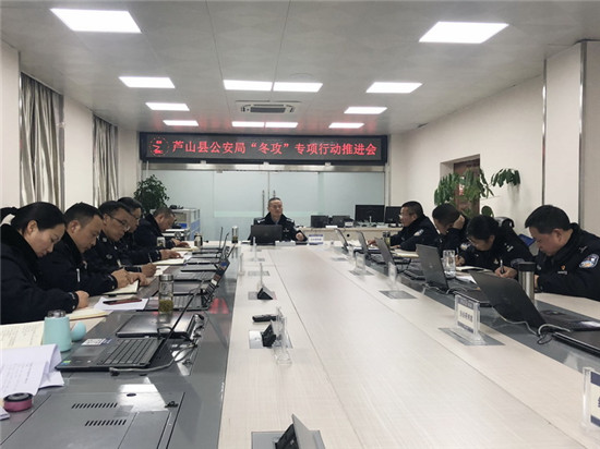 四川新闻网雅安1月18日讯(刘菊 王芦蓉 文/图)1月16日下午,芦山县公安局在四楼会议室召开“冬攻”专项行动推进会,对当前和今后一个时期重点工作进行部署,在家局党委委员、各牵头部门负责人参加会议。会议由局党委书记、局长吴文君主持。 会议听取了该局“冬攻”专项行动推进情况、“子方案”、进度表拟定情况,认真分析了专项行动中存在的优势和劣势,安排部署了下步工作措施。会议指出,1月11日“冬攻”专项行动部署会召开以来,该局无论是在整体氛围营造上、工作推进督导上,还是在战果体现经营上都有了一定程度的提升,全局上下要继续保持工作状态,振作精神再出发,全力以赴创佳绩。