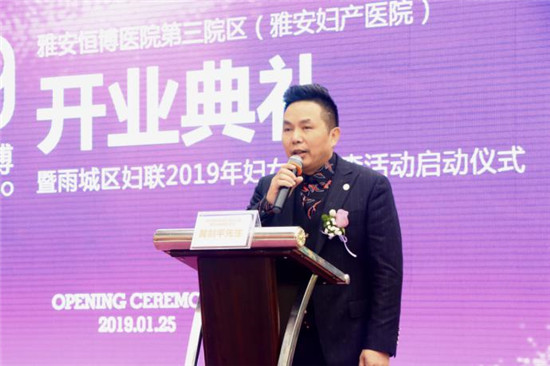 四川新闻网雅安1月26日讯(杨佳 文/图)1月25日上午,雅安恒博医院第三院区——雅安妇产医院举行开业盛典,医院正式投入运营。 雅安妇产医院位于雨城区碧峰峡路79号(原旅游车站旁),是集个性化产科、专业微创妇科、高品质妇女保健、专家儿科、人性化儿童保健等为一体的新型家庭式一体化生育中心。医院引进先进的妇产儿医疗服务理念,创建优美的酒店式就医环境,致力于为广大妇女儿童提供高品质的全孕产期健康支持、个性化定制多种安全分娩方式、贴心母婴产后护理。 “作为集团一员,我见证了雅安恒博从无到有;从种子,生根、发芽、到茁壮成长。”开业典礼上,四川恒博集团公司总裁林志尧首先代表四川恒博集团向到场嘉宾表示热烈欢迎,同时感谢雅安恒博医院医护人员及工作人员的辛勤付出,并对雅安恒博寄予做更好、做更强的美好期望。 四川恒博集团公司副总裁、雅安恒博医院院长黄剑平在致辞中表示,雅安妇产医院将全力为妇女、胎儿、新生儿提供细致卓越的关怀。致力于打造女性医疗、魅力维养、妇婴保健的智能化、全程管家式服务的女性健康园区,为女性提供全方位的健康保障。 为响应国家号召,雅安妇产医院还携手雅安市雨城区妇女委员会在开业之际启动了“2019年雨城区妇女病普查”公益活动。在雅安市雨城区妇女联合委员会主席王丽莉的见证下,活动正式开启,同时为雅安妇产医院授予“2019年雨城区妇女病普查医疗定点机构”铜牌。 王丽莉主席还介绍道,为辖区妇女进行公益体检活动,让适龄女性在雅安妇产医院接受免费健康体检。这不仅能有效增强妇女的自我保健意识和疾病防治意识,还能有效提高妇女同志的生活质量,使“绿色孕育”理念得以实践与发展。 庆典最后,雅安妇产医院医护人员共同宣誓,表达雅安妇产医护人员在管理团队的领导下、在权威特聘专家的指导下,为产妇和宝宝们带去优质医疗服务和温暖呵护的决心,对雅安妇产未来发展越来越好的信心。