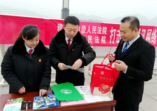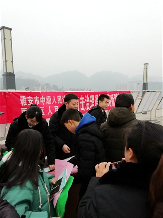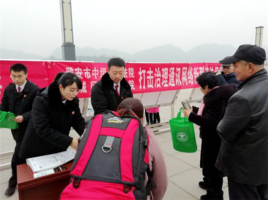 四川新闻网雅安1月27日讯(田茂 图/文)为进一步严厉打击、全面治理电信网络新型违法犯罪,不断提高辖区群众防骗识骗能力,切实维护社会和谐稳定和人民群众生命财产安全。1月24日上午,雨城区法院刑庭干警与雅安中院干警、名山区法院干警一道,来到雅安市火车站开展打击治理电信网络新型违法犯罪法制宣传活动,收到了良好的社会效果。 法院干警利用春运期间返乡返城出行高峰,在站前广场通过悬挂宣传横幅、发放宣传手册、设置咨询台、赠送写有宣传标语的购物袋、现场讲解典型案例等方式,向往来群众介绍了此类犯罪常见的作案手段,提醒在场群众要提高防范意识,防骗、识骗、拒骗,在权益受到侵害时要用合法、有效的手段维护自身利益。现场群众纷纷表示,一定会认真学习宣传手册,同时警醒身边同事、朋友、家人,让大家一起做到心中有数、防止被骗。此次宣传活动,共发放宣传手册300余份,接受群众咨询40余人次,达到了预期的宣传效果。 下一步,雨城区法院将进一步加大宣传力度,深入辖区内各机关、单位、学校、乡村、社区、企业等,开展典型案例巡展、“以案说法”宣讲等活动,同时积极运用互联网网站、微博、微信等新媒体进行宣传报道,引导民众增强法律意识,发动群众积极参与,营造全民参与打击治理电信网络新型违法犯罪的舆论氛围。 |