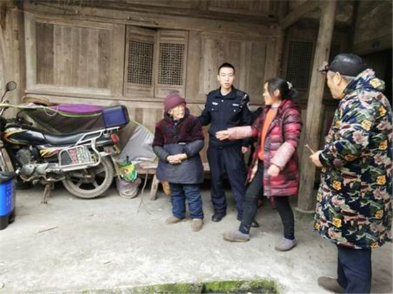 四川新闻网雅安2月18日讯(程爽 文/图)近日,名山区公安分局前进派出所利用“一标三实”信息系统,准确查找到一位走失老人的居住地址和家属信息,并及时通知其家人接老人回家。 据了解,名山区前进派出所接到群众报警求助:前进乡楠水村12组有一名老人迷路了需要帮助,请迅速前往救助。接警后,值班民警迅速赶赴现场。经了解,老人由于年纪太大,又不会写字,加上迷路心里着急,老人无法说清自己身份及家人情况。为尽快帮助老人找到家人,民警一边安抚老人情绪,一边耐心进行询问。根据老人提供的一些零散线索,通过人像比对和“一标三实”实有人口信息核对,终于确定了老人的身份,老人叫郑某某(女,91岁),原住在前进乡清河村,后随家人搬到前进乡楠水村。并在“一标三实”系统实有人口中查到其儿子张某某的联系方式。十多分钟后,老人的儿子、儿媳赶到报警人家中看见老人平安后这才松了一口气,连忙拉着民警的手一再致谢。 |