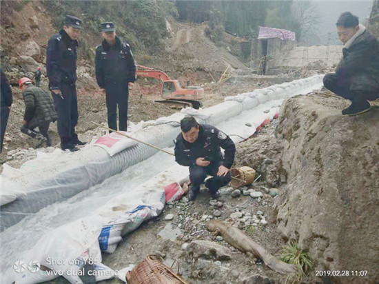 四川新闻网雅安3月5日讯(王怡轸 王芦蓉 文/图)2月28日,芦山县公安局大川派出所民警接快乐村施工单位电话称:快乐村管道加固施工现场发现一只已经死亡的野生娃娃鱼,请出警。