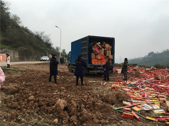 四川新闻网雅安3月5日讯(杨月 王芦蓉 文/图)为贯彻落实省市公安机关近期重点工作安排部署,进一步巩固“迎庆1号”专项行动成果,确保社会治安大局安全稳定。芦山县公安局联合相关单位无害化处理一批烟花爆竹。 3月4日,芦山县公安局治安管理大队联合芦山县安监局、县环保局在芦山县清仁乡向阳组(芦山县垃圾处理厂),采用无害化处理方式将一批价值约15万元烟花爆竹进行销毁。针对此次处理的烟花爆竹存在量多、面广、分布散的特点,在处理过程中,县局治安大队实地踏勘,制定处理方案,严格落实职责任务,清点、运输等各环节的安全。集中警力,抽调专人负责现场的安全保卫和警戒工作,对处理现场通过设立警戒线等方式进行警戒,禁止无关人员进入现场,成功将烟花爆竹无害化处理。