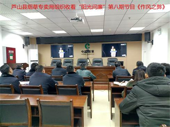 四川新闻网雅安3月6日讯 近日,芦山县烟草专卖局组织全体职工在多媒体会议室集中观看了“阳光问廉”第八期节目《作风之弊》。 本期节目以“集中整治群众反映强烈、损害群众利益的形式主义、官僚主义突出问题”为主题,从2018年度全市党风廉政建设社会评价看基层入户走访调查,收集的群众意见建议和信访举报中进行筛选。集中曝光了名山区国道108线改修油路工程,经过沿线场镇时,未修建排水沟,雨后排水不畅;芦山县飞仙关镇三江水厂投入运行后因管理不善导致经常停水;雨城区八步乡李家村4组村民核桃种植保证金迟迟未退还等5个方面群众反映强烈的形式主义、官僚主义典型问题,深挖职能部门及相关干部不担当、不作为、不履职等作风问题。 收看节目后,全体职工进行了热烈的讨论,纷纷表示要旗帜鲜明反对形式主义、官僚主义,持之以恒进行作风建设,无论在哪个岗位做什么工作,都要在其位、谋其政、司其职、尽其责,真真切切为群众办实事、办好事。(芦山县烟草专卖局供稿) |