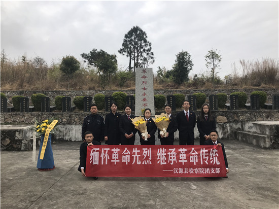四川新闻网雅安4月4日讯 清明节到来之际,为纪念人民英雄、缅怀革命先烈,弘扬爱国主义精神,加强爱国主义教育,传承先烈的革命精神,汉源县检察院开展了“我们的节日·清明”系列活动,以“传承·2019清明祭英烈”为主题,以缅怀英烈、传承英烈精神为重点,组织党员代表、入党积极分子代表、青年代表10余人在汉源县革命烈士陵园(佛静山公墓)进行了文明祭扫,缅怀先贤先烈。