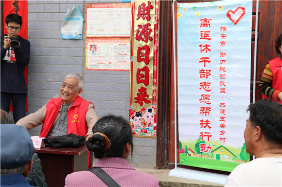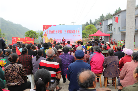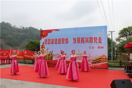 四川新闻网雅安4月19日讯(张朝成 文/图)4月19日上午,值此芦山“4.20”强烈地震六周年来临之际,为弘扬伟大抗震救灾精神,激发脱贫奔康的内生动力,引领广大群众感党恩跟党走。中共雅安市委老干部局携手四川省扶贫基金会雅安市分会、雅安市青衣江老年大学、雅安市老专家服务团和天全县委老干部局、天全县人社局、仁义乡党委政府在仁义乡桐林村文化院坝开展了“感恩奋进颂党情 发展振兴跟党走”主题教育活动。 活动现场 主题教育活动在仁义乡党委书记王志勋同志致词及开场舞《吉庆锣鼓》的舞动下拉开了活动的帷幕。在主题活动中,市级离退休老干部表演的情景秀《花好月圆》、舞蹈《江山》,县人社局带来了儿童参与的歌伴舞《感恩的心》,仁义乡党委政府带来的情景舞蹈《弘扬红军精神 展望仁义未来》等节目将活动的热潮推向了一次次的高峰。 彭定邦、梅驭宇、陈冬冬为获奖人员颁奖 带领孩子唱感恩的心 在活动现场,市县乡离退休老干部和在职领导干部给仁义乡桐林村先进党员、脱贫示范户、种植大户、养殖大户、孝老爱亲户、洁美家庭户代表颁发了荣誉称号。