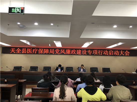 党风廉政建设专项行动启动大会 会后,县医保局立即召开了“天全县医疗保障局党风廉政建设专项行动启动大会”,对局党风廉政建设专项行动工作进行了安排部署,切实把“新衙门成为清衙门”的压力传导到医保局每个干部职工,真正让清廉从政、清正干事成为医保干部的鲜明底色。(天全县医保局供稿) |