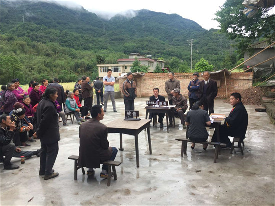 四川新闻网雅安5月8日讯(高玉丹 江涛 文/图)5月7日,天全法院在新场乡玉阳村审理了一起赡养纠纷案件,20余民村民旁听案件庭审,取得良好的法治教育效果。