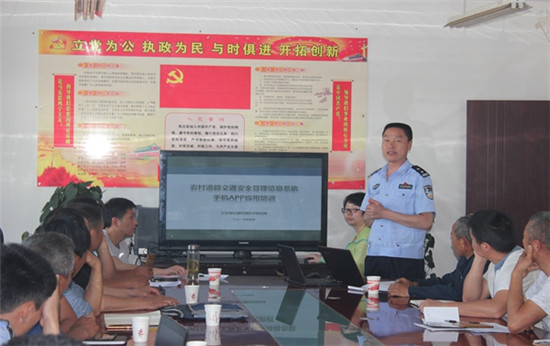 四川新闻网雅安5月22日讯 为推动汉源县“四川省农村道路交通安全信息网管理系统”及“农村道路交通安全管理信息系统手机APP”使用,提升警员及乡镇交通安全管理员、劝导员业务水平,进一步加强农村道路交通安全管理工作。5月17-21日,汉源县公安局交警大队分别走访富泉镇、富庄镇、坭东镇、河南乡、安乐乡等10个乡镇开展农村道路交通安全管理信息系统手机APP应用培训会。