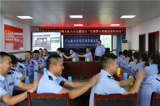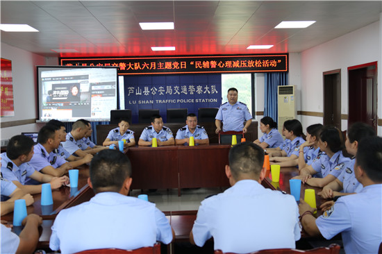 四川新闻网雅安6月25日讯 为扎实推动公安机关打造“五个最强”的目标,助推 “迎庆”系列专项行动心理服务工作开展,按照《芦山县公安局“强实战、保大庆”全警大练兵大比武活动暨行政执法大学习大培训工作方案》要求,6月21日,芦山县公安局交警大队利用主题党日开展民辅警心理减压放松活动。